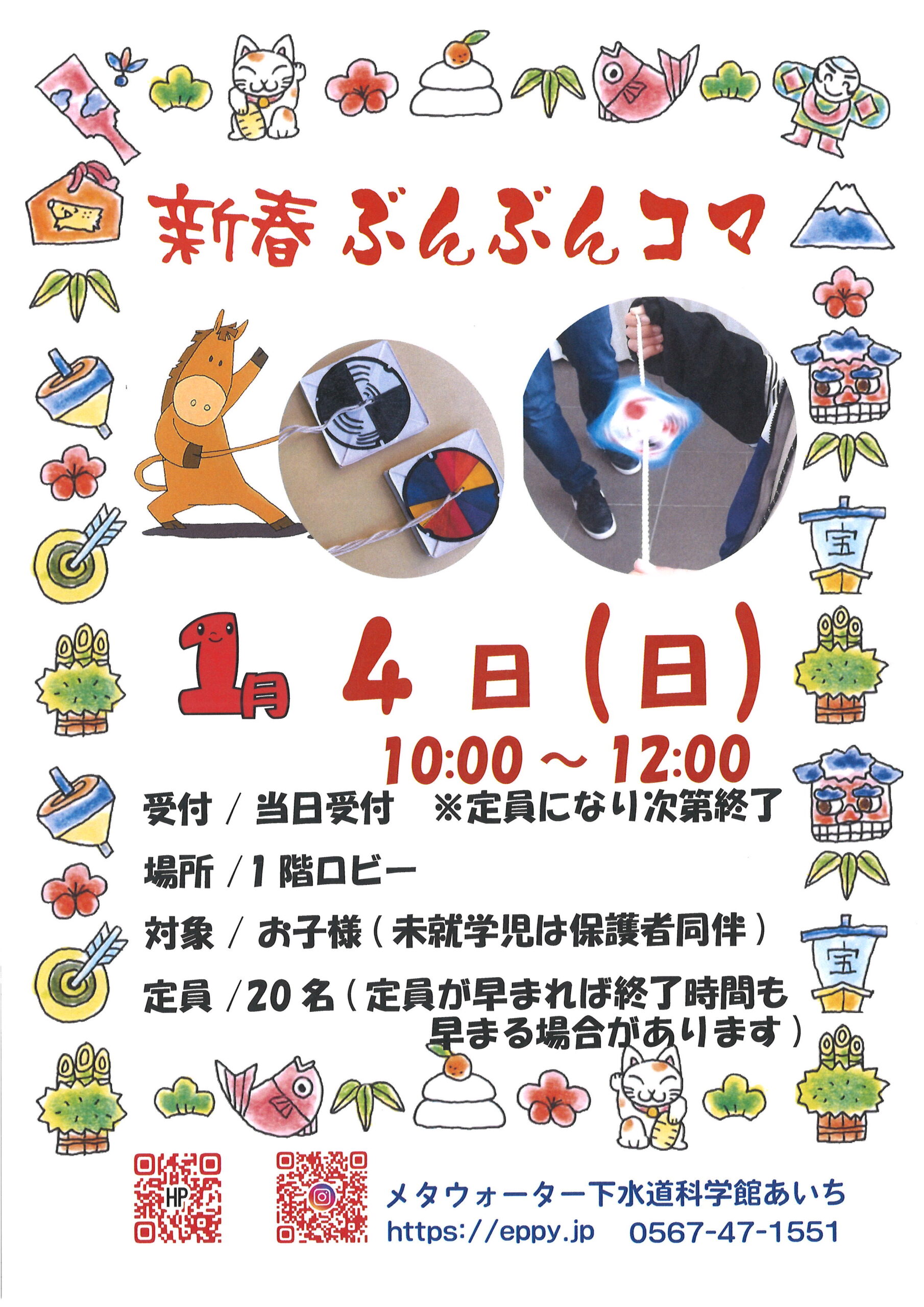 ~ブンブンこまを作って、音を楽しもう!~ ◆日時/1月4日(日)10:00~15:00 ◆対象/お子様(未就学児は保護者同伴を推奨) ◆定員/先着20名程度 ◆申込/当日受付