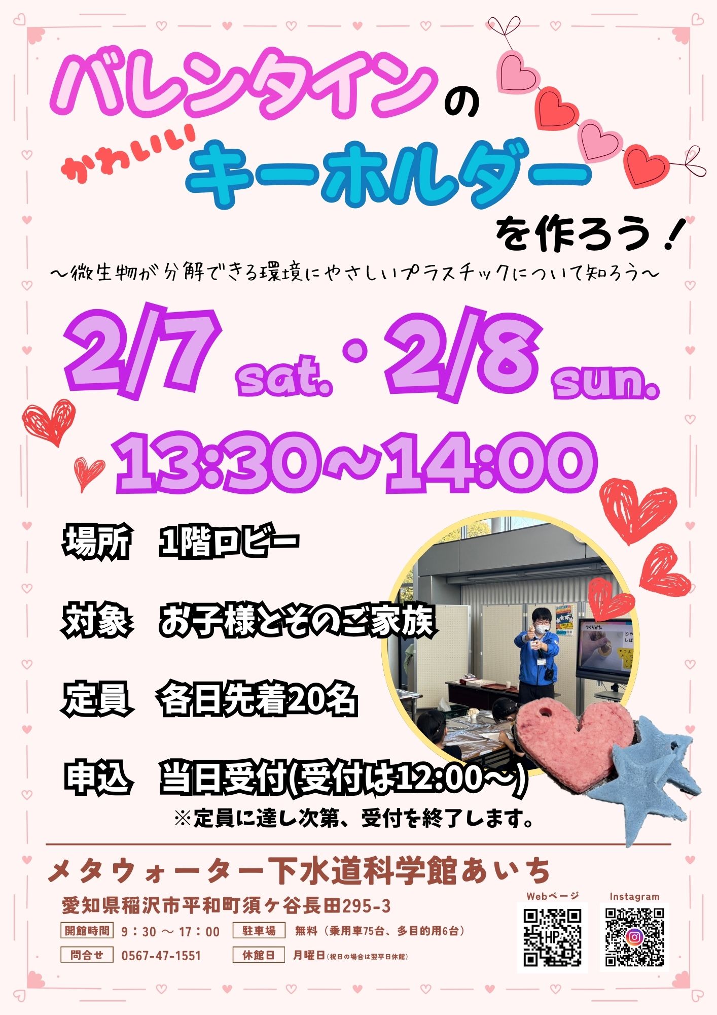 ~微生物が分解できる環境にやさしいプラスチックについて知ろう~ ◆日時/2月7日(土)・2月8日(日)13:30~14:00 ◆場所/1階ロビー ◆対象/お子様とそのご家族 ◆定員/各日先着20名 ◆申込/当日受付(受付は12:00~) 定員に達し次第、受付を終了します。 ※団体で工作の参加をご希望の場合は、事前にご連絡ください。 当日の受付は行えません。