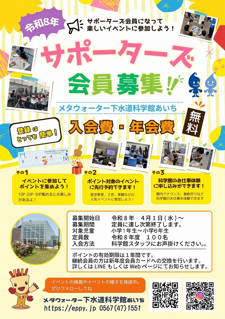 メタウォーター下水道科学館あいちサポーターズクラブは、令和4年4月1日に発足しました。