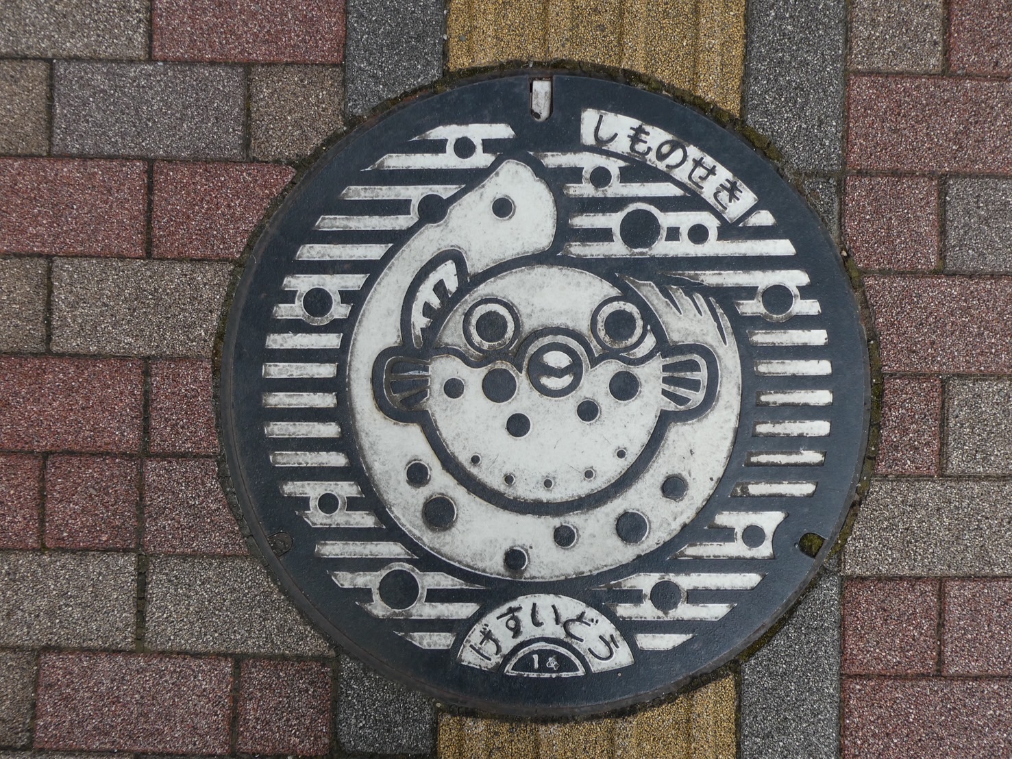 下関はフグが有名ですね。 下関市のマンホールの蓋には、フグがデザインされているものがあります。 丸々としていて、とても可愛いですね。