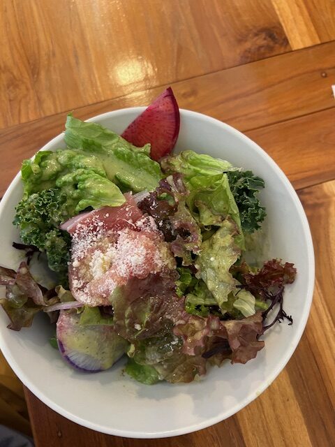 街中で注文するパスタセットのサラダは三口くらいで食べておしまいなのに・・食べ応えがありました。